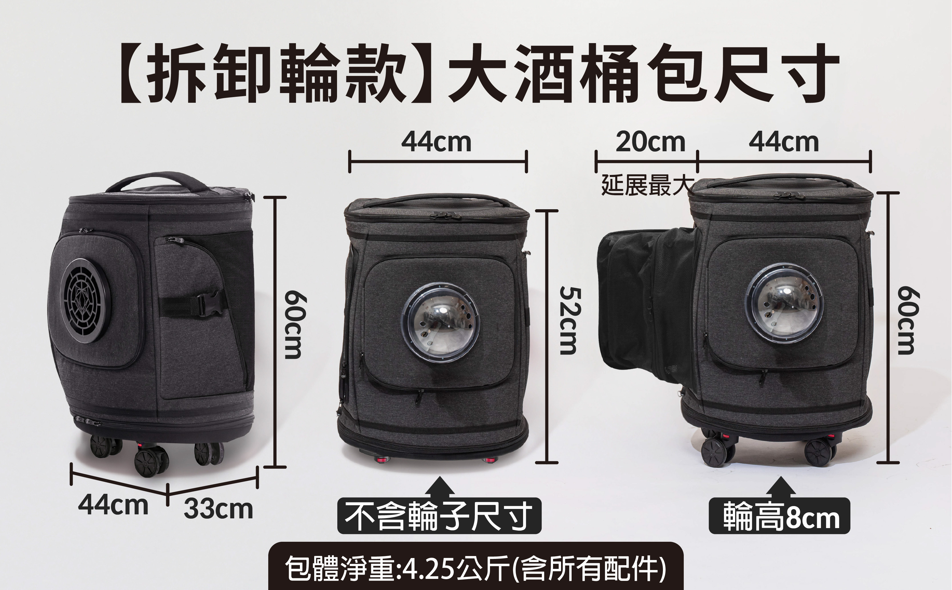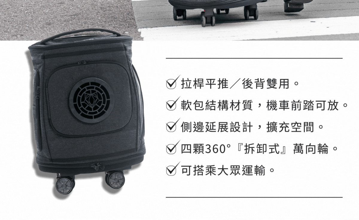 【拆卸輪款】高機能寵物外出包,較適合中型犬大小,機車前踏可放,大眾運輸可搭乘,攜帶寵物出門更便利。
