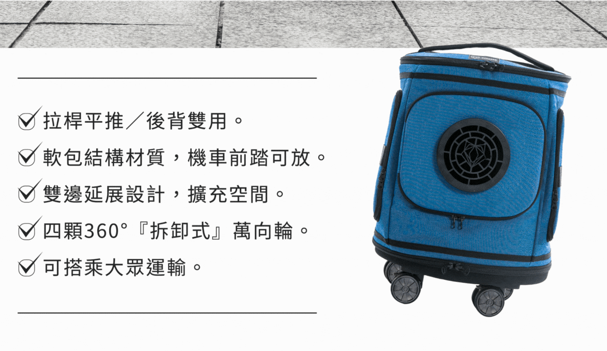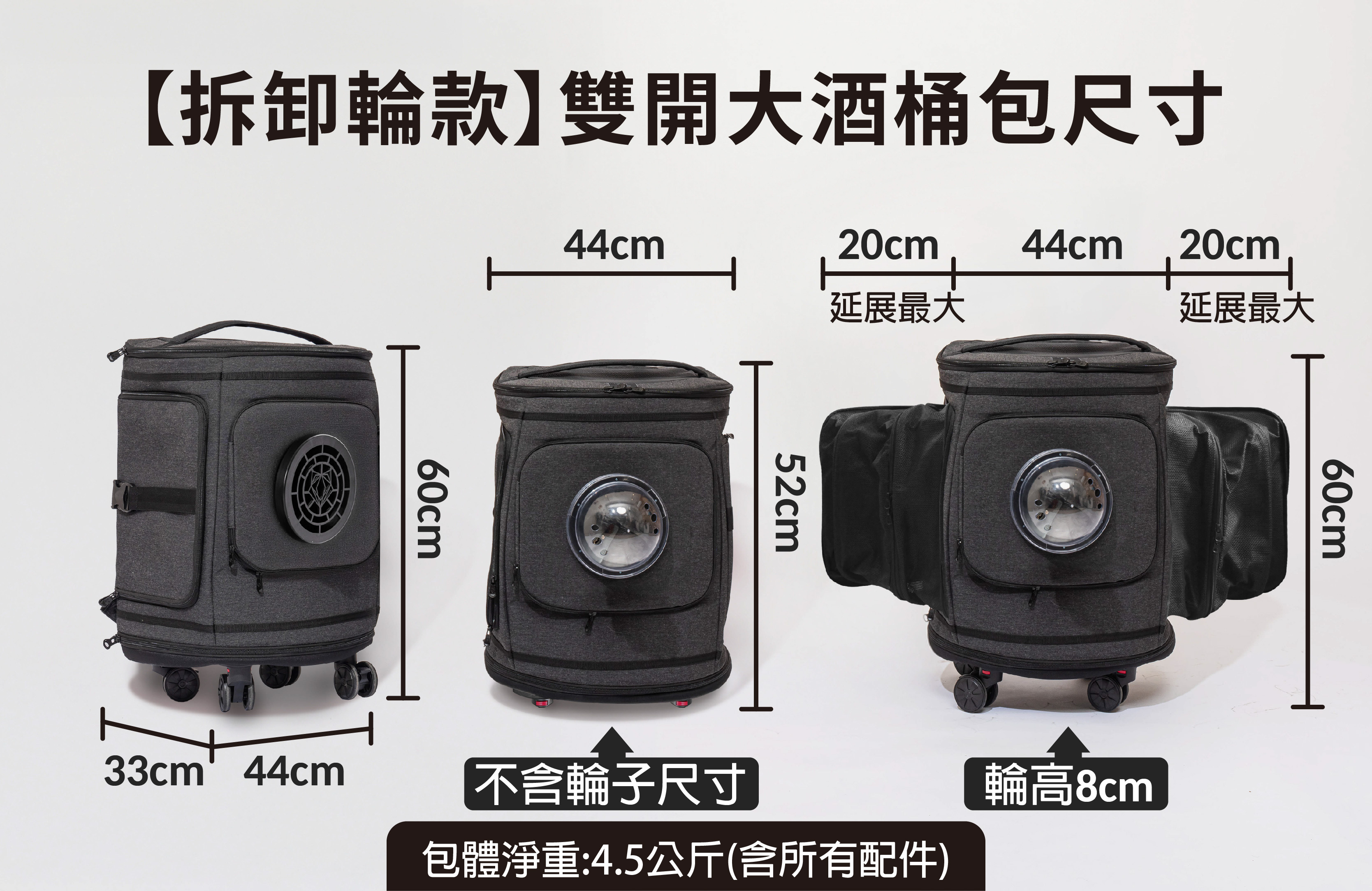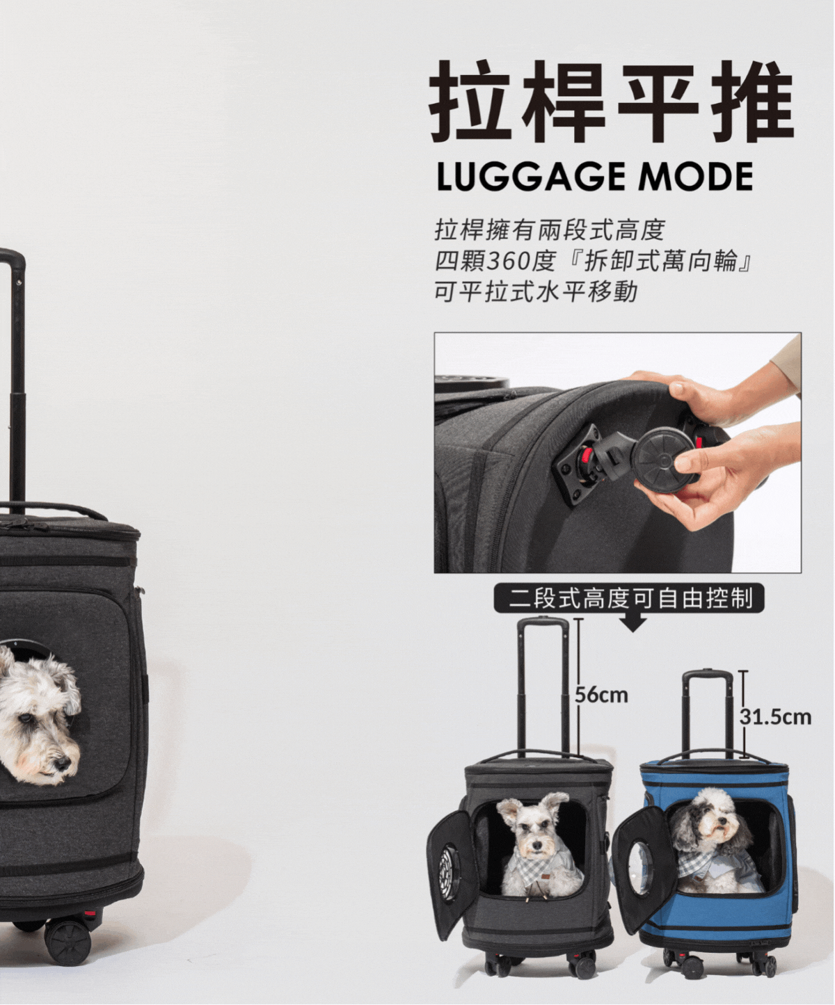 【拆卸輪款】高機能寵物外出包,較適合手腳較長的寵物,大眾運輸可上,機車前踏可放,攜帶寵物出門更便利。