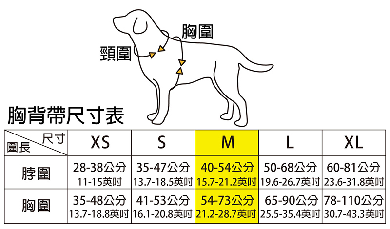 M尺寸-脖圍40-54公分(15.7-21.2英吋)|胸圍54-73公分(21.2-28.7英吋)