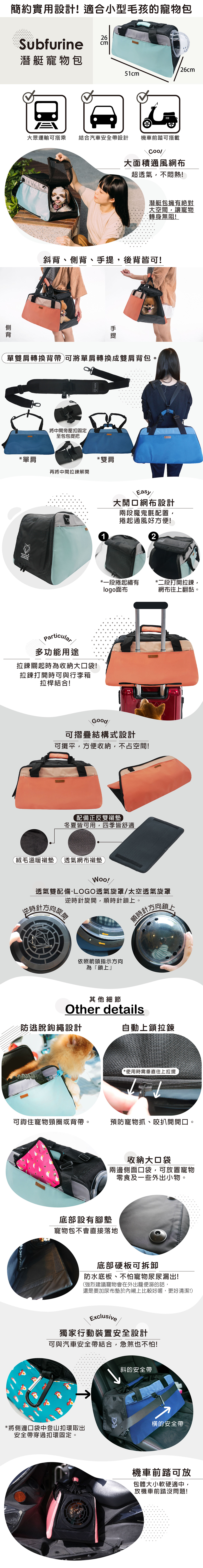 簡約實用設計,小型毛孩適用的外出寵物包。